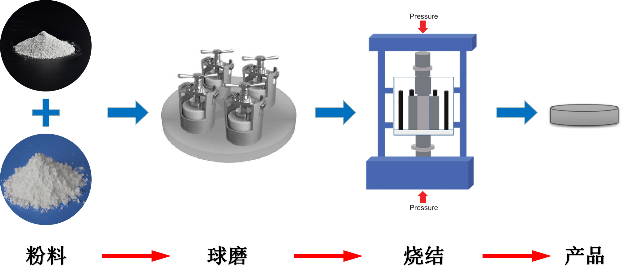 將原料粉體松裝如模具中,壓實后在真空狀態(tài)或惰性氣體的保護(hù)下,熱壓燒結(jié)制備。