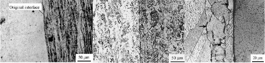 目前,針對多層金屬復(fù)合材料的研究多集中于低熔點、低強度、變形匹配性好、延展性好、強度差異不大的兩種或多種純金屬及其合金材料的復(fù)合,它們?nèi)菀走M行變形和相互協(xié)調(diào)變形,能夠形成界面連續(xù)的多層復(fù)合材料。例如,鋁-鋁、鋁-銅、鋁-鎳、鋁-鈦、銅-鈮、鋁-鎂,鋁-鋼等。如果多層復(fù)合材料組元的力學(xué)性能差異過大或者組元變形能力很差勢必會影響復(fù)合材料整體的協(xié)調(diào)變形,對界面的結(jié)合質(zhì)量也提出了更高的要求。目前的重點研究方向在于制備變形能力及力學(xué)性能優(yōu)異的多層金屬復(fù)合材料。